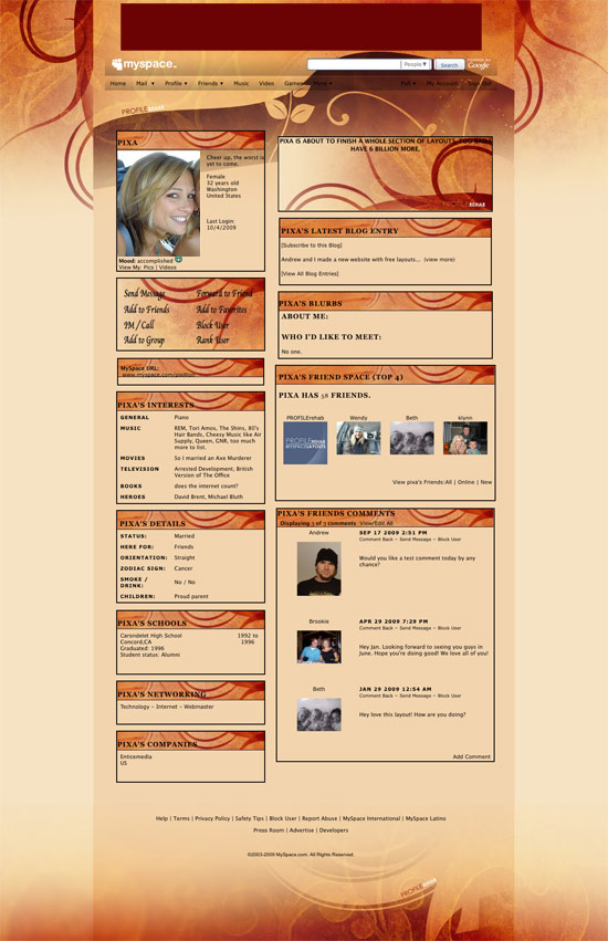 Back to Vintage Swirls Myspace Layout- Peach Vintage Theme- Vintage Background
