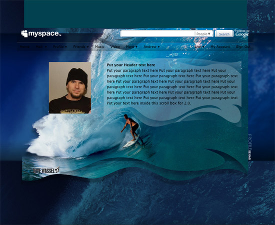 Notice: Undefined variable: page_title in /home/profilerehab/public_html/includes/page.alternate_preview.php on line 3 Awesome Surfing Layout - Blue Wave Myspace Layout - Dave Wassel Layout