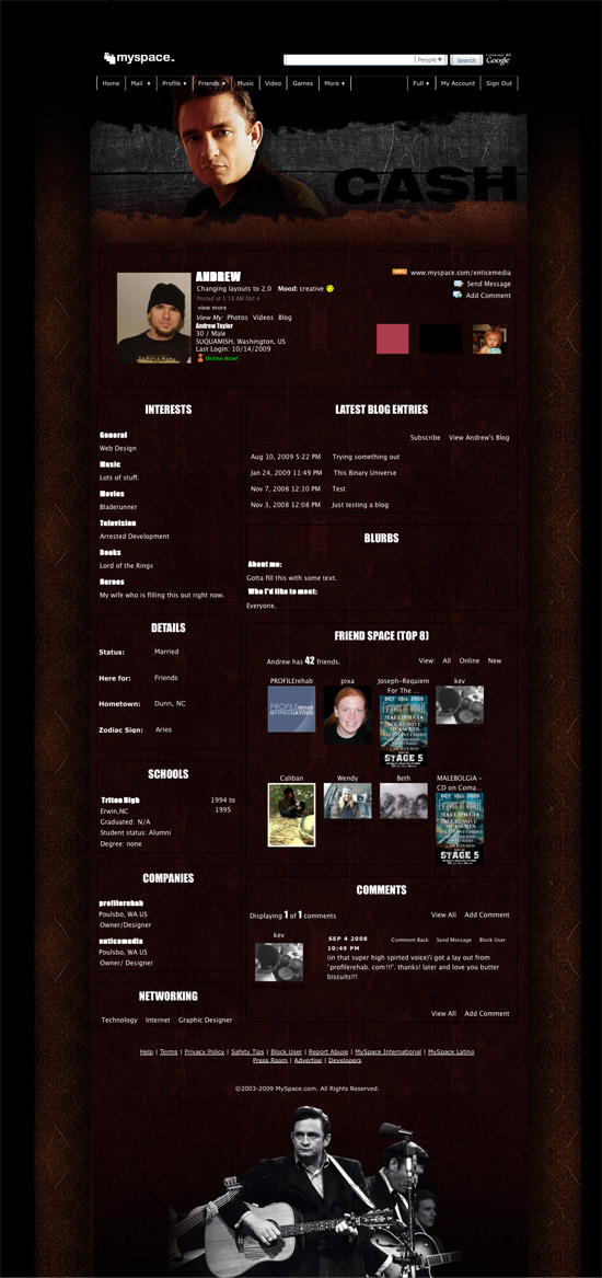 Notice: Undefined variable: page_title in /home/profilerehab/public_html/includes/page.20_alternate_preview.php on line 3 Johnny Cash Myspace Layout- Man in Black Theme -Johnny Cash Design