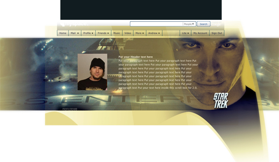Free Star Trek Hide Everything Myspace Layout with Kirk, Star Trek Kirk Layouts, Kirk From Star Trek No Scroll Layouts for Myspace, Unique Star Trek Hide Everything Backgrounds, Short 2.0 Kirk Layouts, Cool Kirk from Star Trek Hide Everything Themes for 2.0, Best Premade Startrek Hide Everything Designs, Star Trek Kirk Tiny Layouts, Star Trek Kirk Themes for Myspace, Yellow Star Trek Layouts, New Star Trek Movie Designs for Myspace 1.0