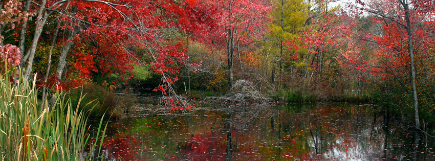 Fall Pond Facebook Cover - Colorful Trees in Autumn - Fall Landscapes Pics