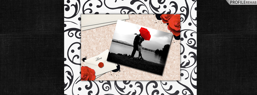 Black & White Love Timeline Cover with Red Roses - Romantic Love Images