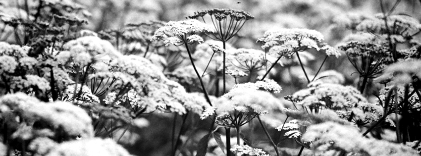 Black & White Snow on Flowers Facebook Cover
