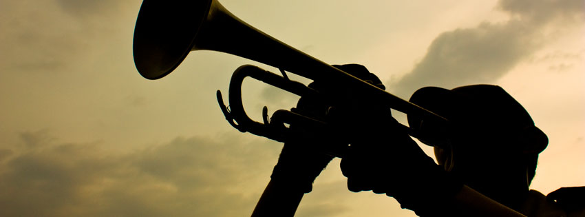 Free Bugle Boy cover for timeline, cool Bugle Boy facebook theme, Military Bugle Boy in Sunset facebook design