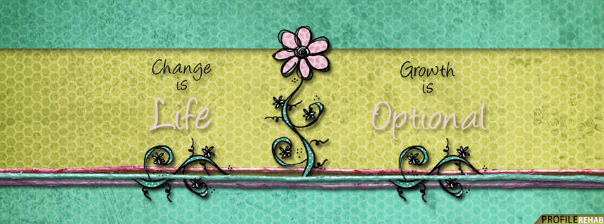 Change is Life Growth is Optional facebook Covers for timeline, cute quote timeline covers, blue and green flower facebook designs with a quote, inspirational quote facebook theme, pink and green facebook cover page with flowers