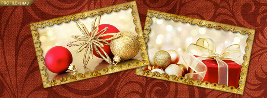 Gold and Red Xmas Ornaments FB Cover, Gold Christmas presents cover for Facebook, latest images of christmas, facebook christmas images, free christmas facebook covers, christmas picture for facebook