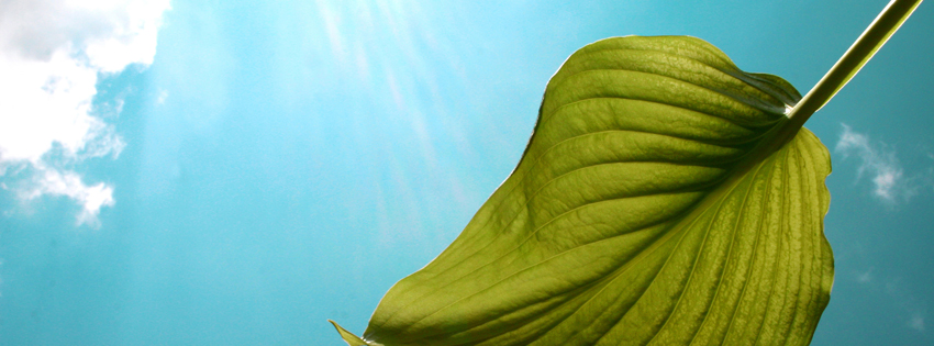 Free Green Leaf facebook Covers for timeline, artistic leaf photography designs for Facebook, pretty leaf in clouds facebook cover page