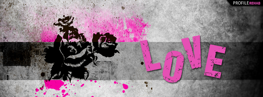 Black and Pink Grunge love facebook cover, Gray and Pink Grunge Cover with that says Love, Pink and gray grunge rose and love fb cover
