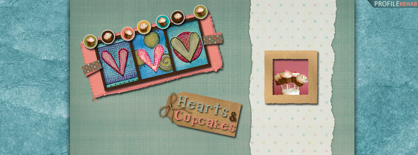 Free Hearts and cupcakes facebook Covers for timeline, cute cupcake facebook timeline covers, cool heart scrapbook designs for Facebook, facebook theme with cupcakes, new Pink and blue facebook cover page with hearts