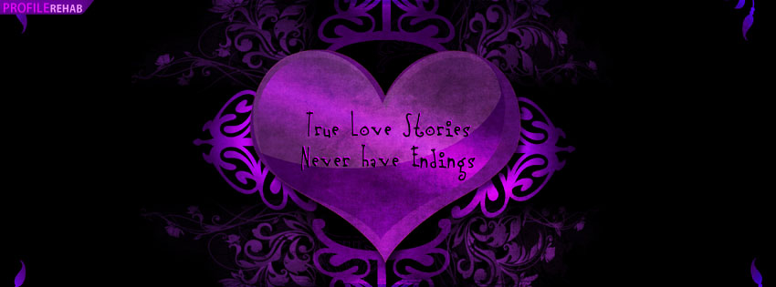 romantic valentine pictures free, download valentines day images, Free Quote cover for timeline about love, cute True love stories never have endings quote facebook theme, Pretty purple and black heart facebook design