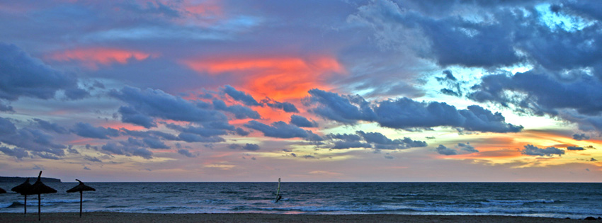 Best Mallorca Spain sunset facebook timeline covers, Beautiful Majorca Spain facebook timeline designs, Amazing Scenic sunset facebook cover themes, Free scenic spain cover photos for facebook with windsurfer