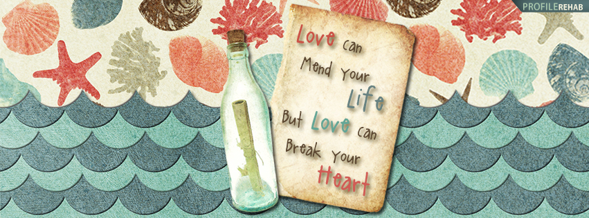broken heart quotes images, broken heart picture quotes, Cute Message in a Bottle timeline covers, Scrapbook style cover themes, Free Ocean Waves facebook cover photos with quote that says Love can Mend your life but love can break your heart, Sting lyrics cover