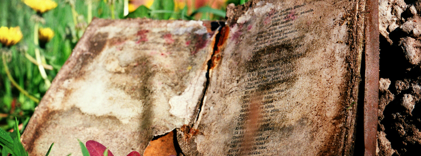 Free vintage book Covers for facebook timeline, cool old book timeline covers, vintage cover designs for facebook, old book in grass facebook theme, artistic facebook cover photos with old book in dirt