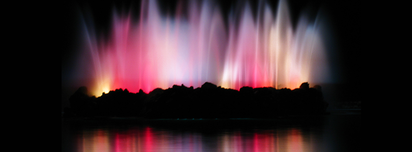 Free colorful fountain facebook Covers for timeline, unique bright colored water show facebook timeline covers, amazing water lights facebook designs, pretty scenic lights facebook theme, awesome rainbow fountain facebook cover page