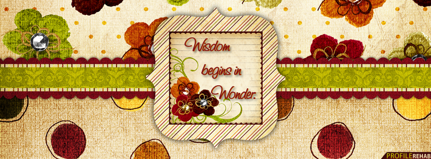 Wisdom Begins in Wonder facebook Covers for timeline, cute fall quote facebook timeline covers, fall colors facebook designs with quotes, pretty red and green facebook theme with quote about wisdom